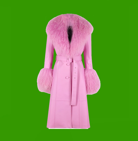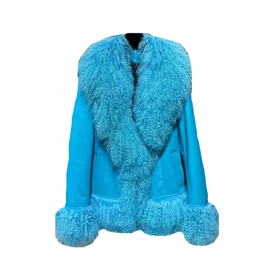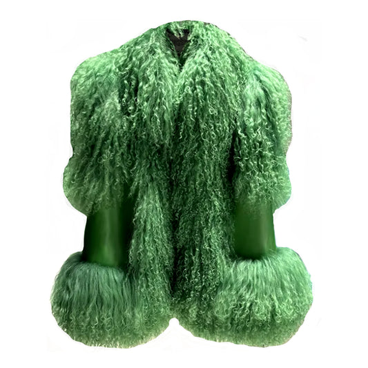 Irreverence Green Sheepskin Jackets with Fur Poufs and Collar