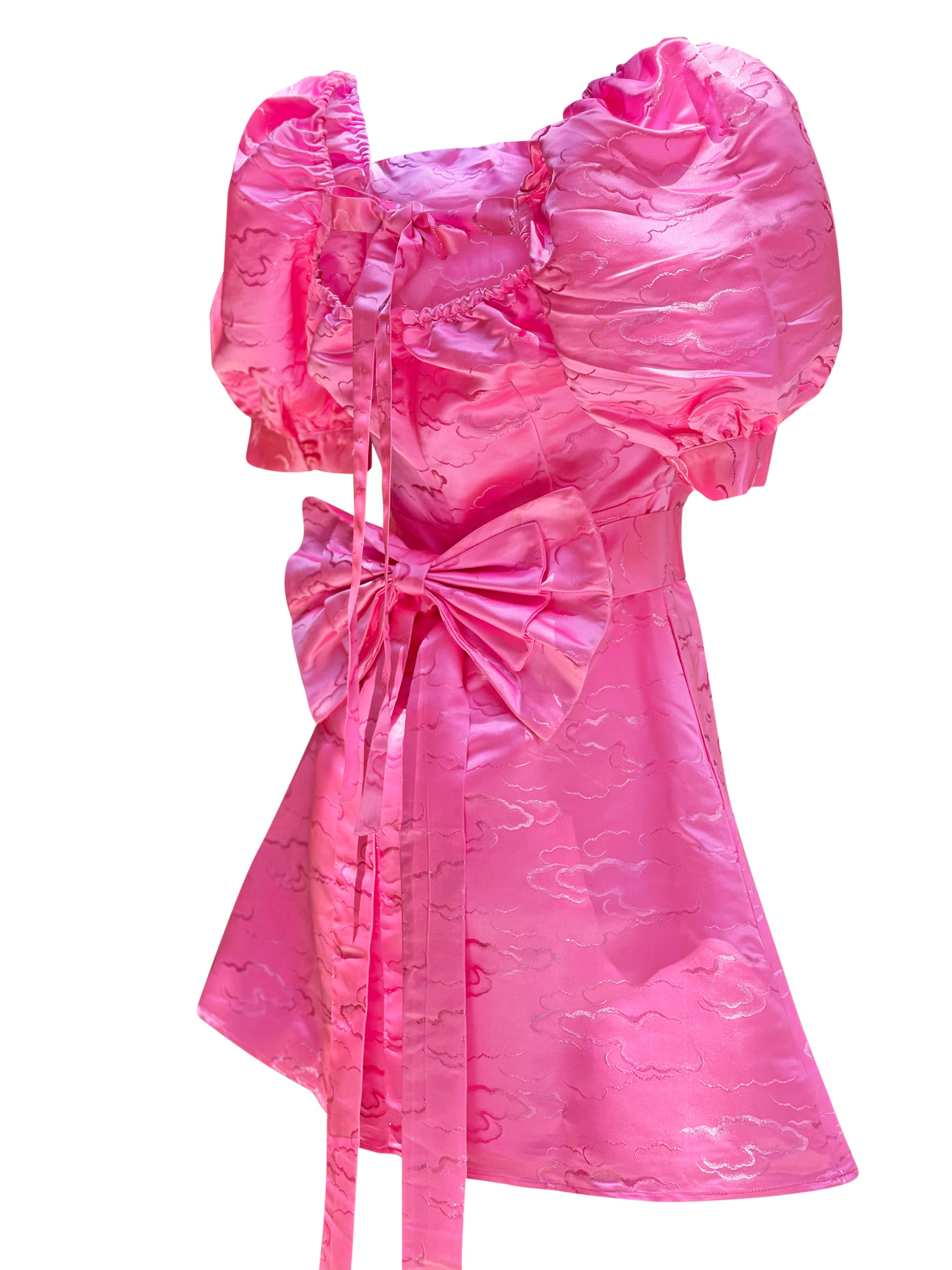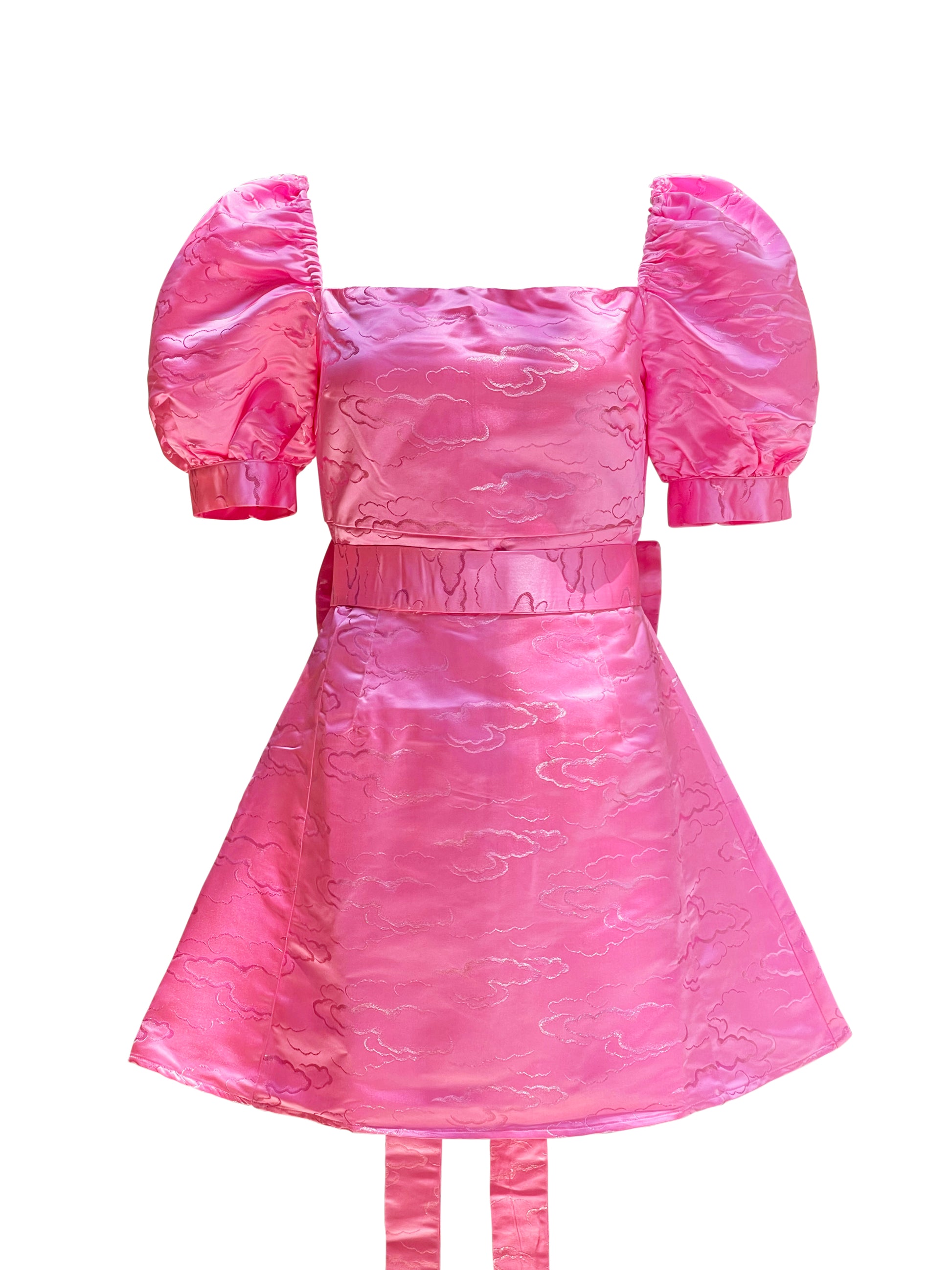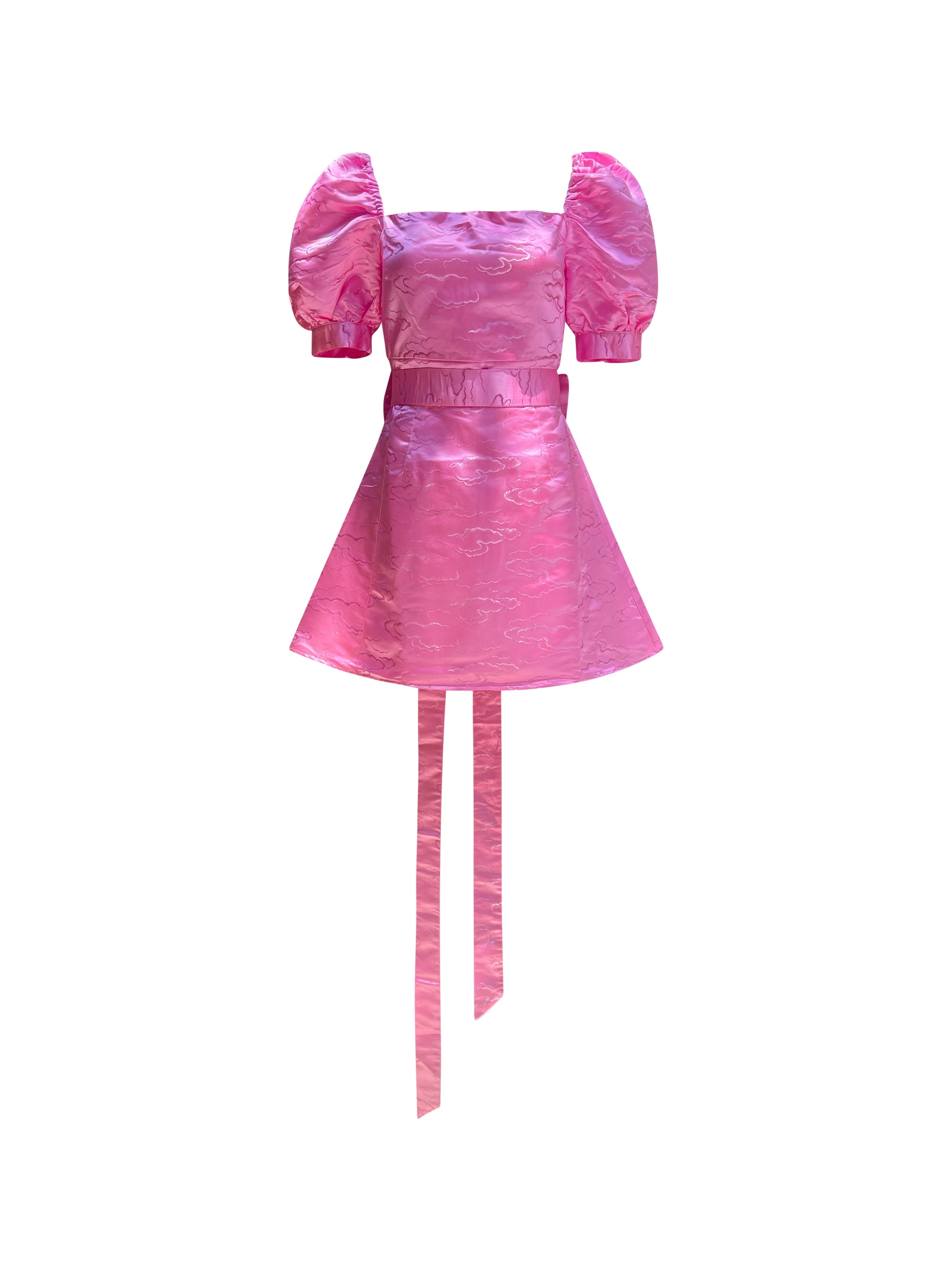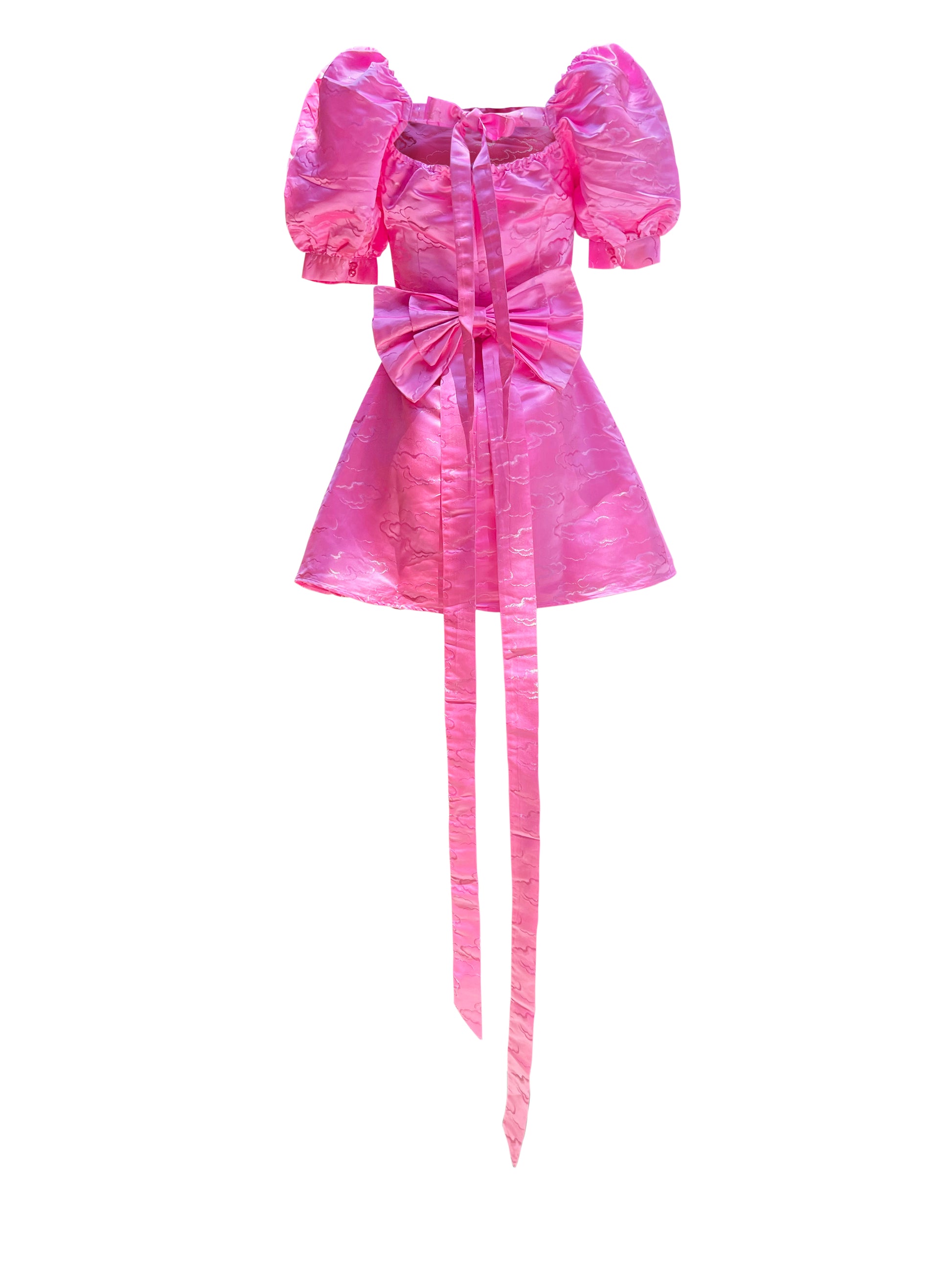 Introducing Off Duty Ballerina, a Barbiecore special with a subtle and exquisite aura. Crafted from a luxurious Satin Cloud Jacquard and lined with premium silk, this pink mini dress offers the perfect blend of grace, comfort and flair to make a truly statement-making birthday dress. No other piece compares.