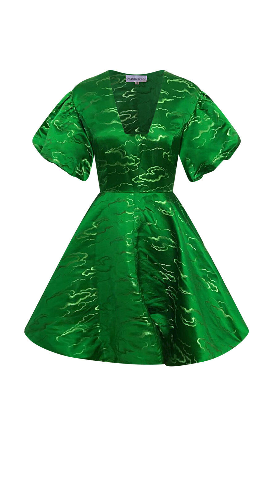 We only made a small batch of this fabric in our custom cloud silk jacquard. Our silk jacquard fabric is made on a very old delicate Chinese wedding fabric weaver.