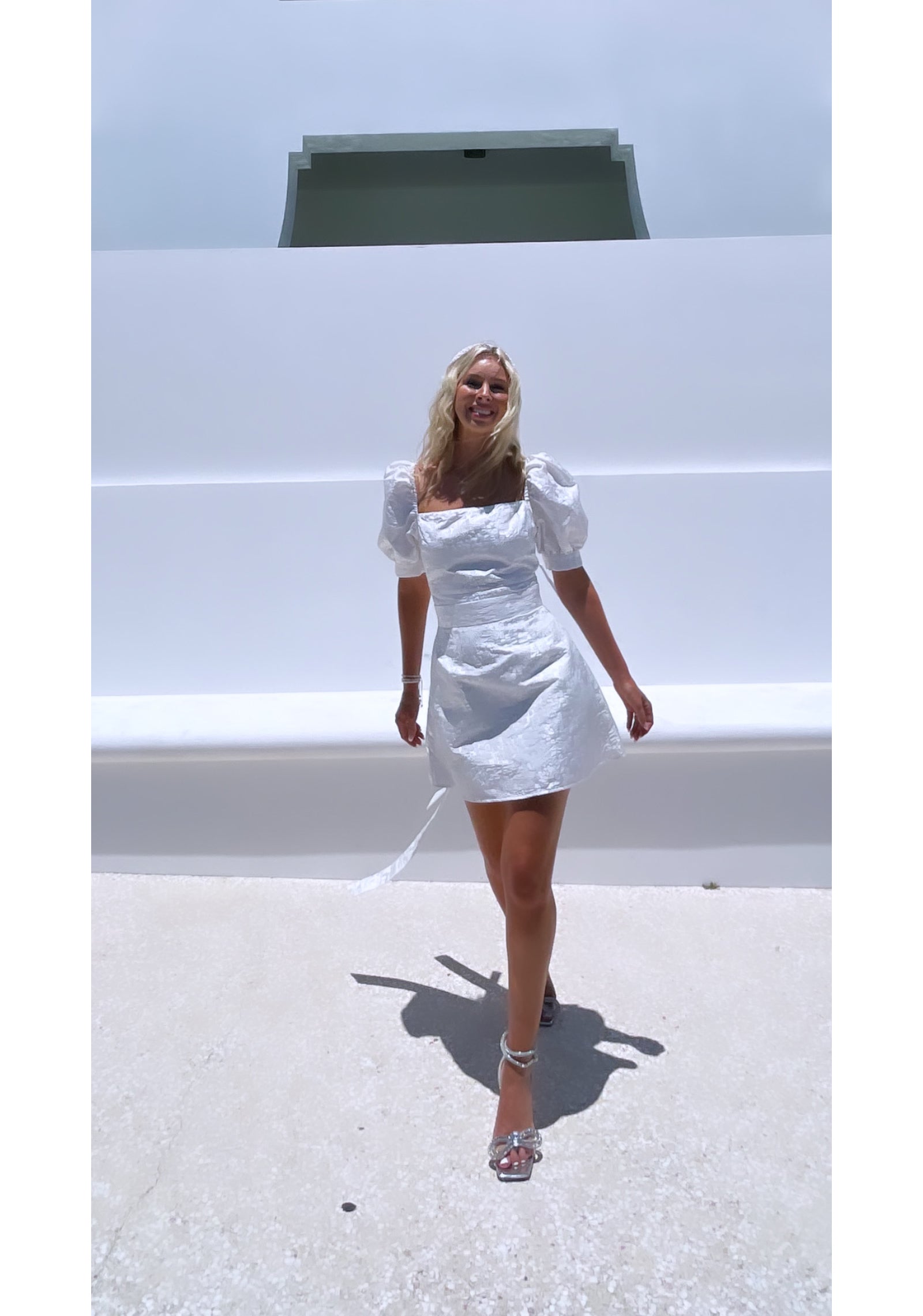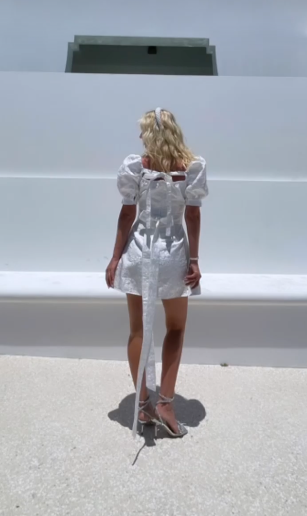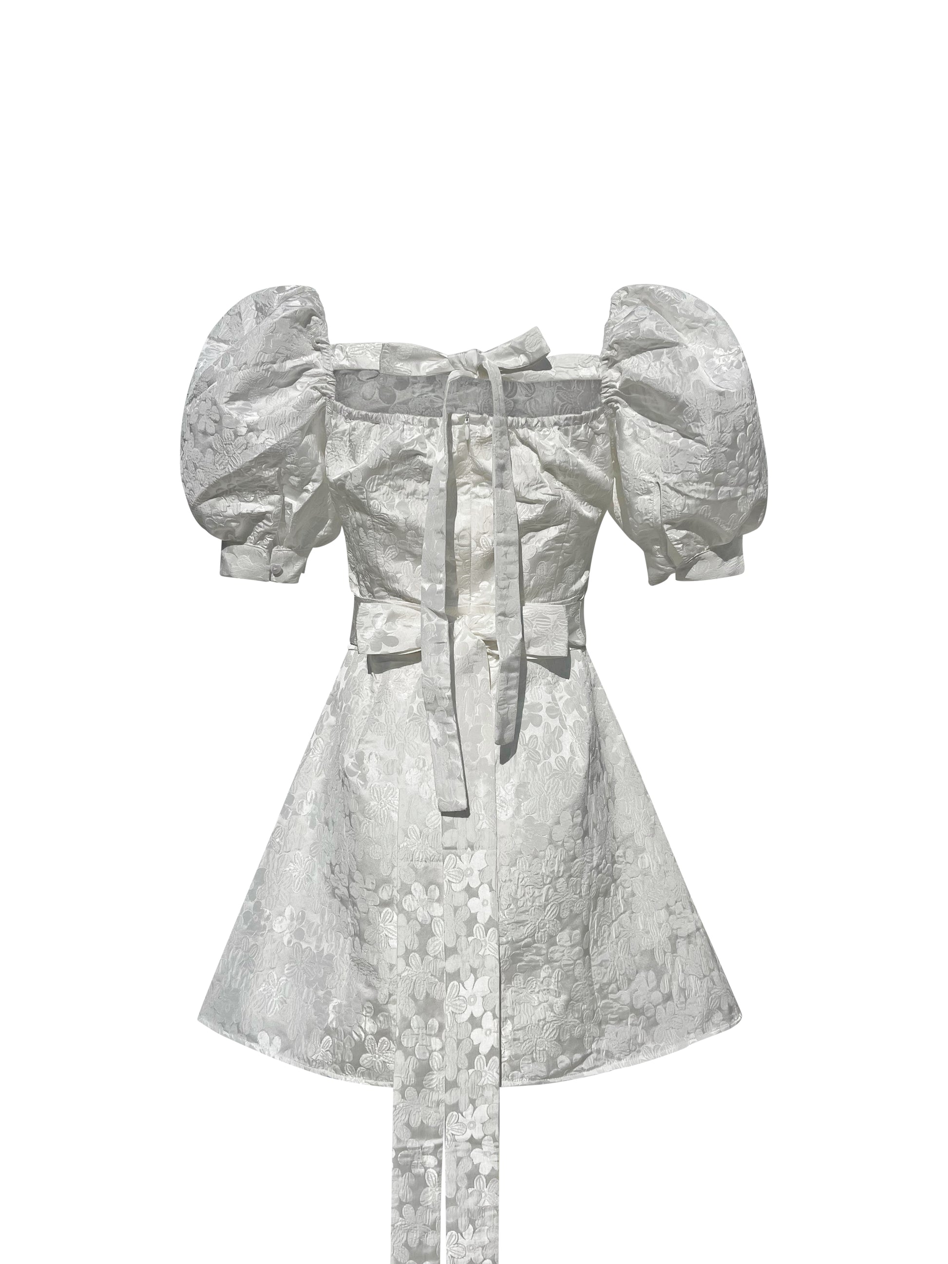 Detachable belt and oversized bow.