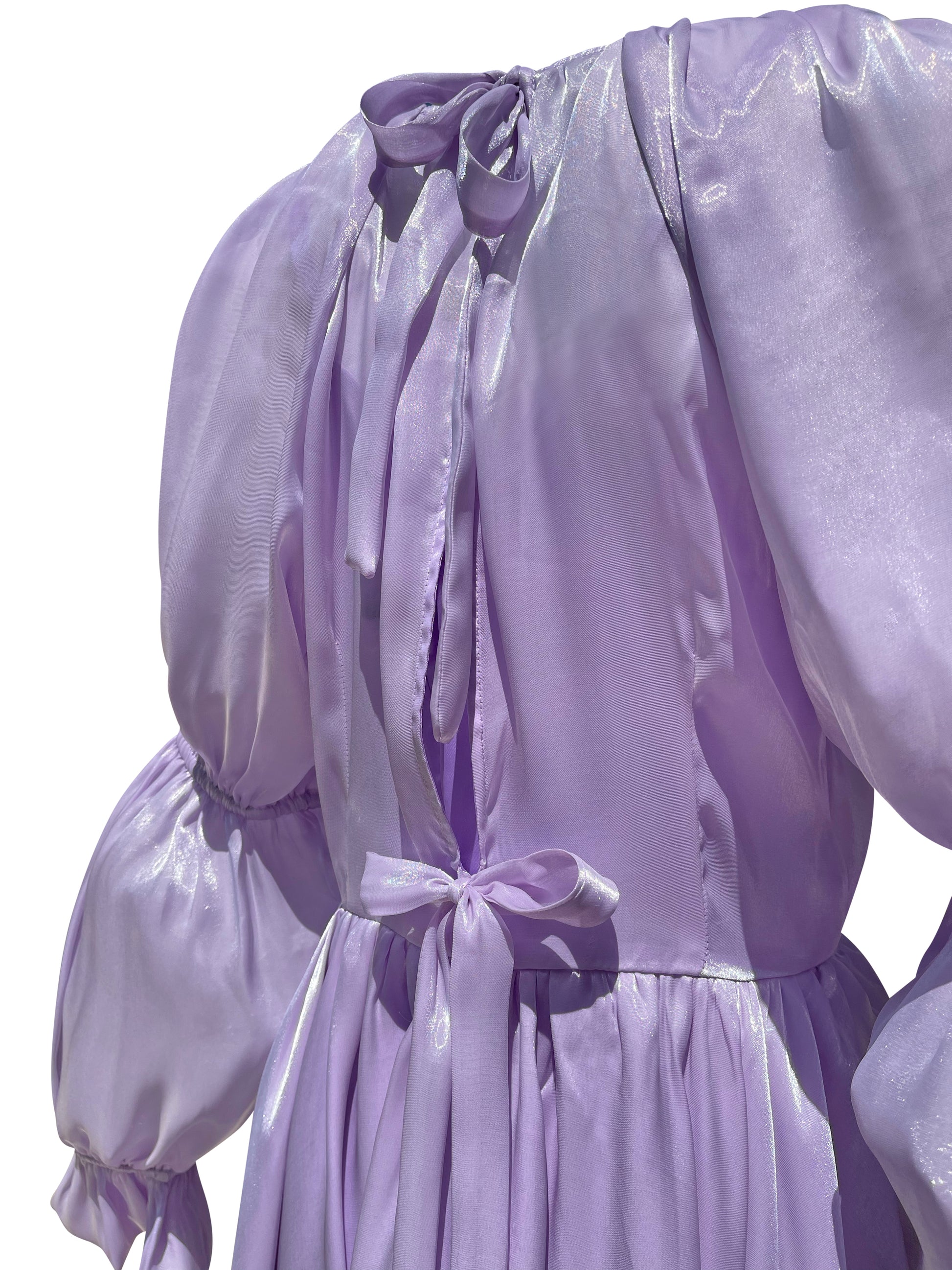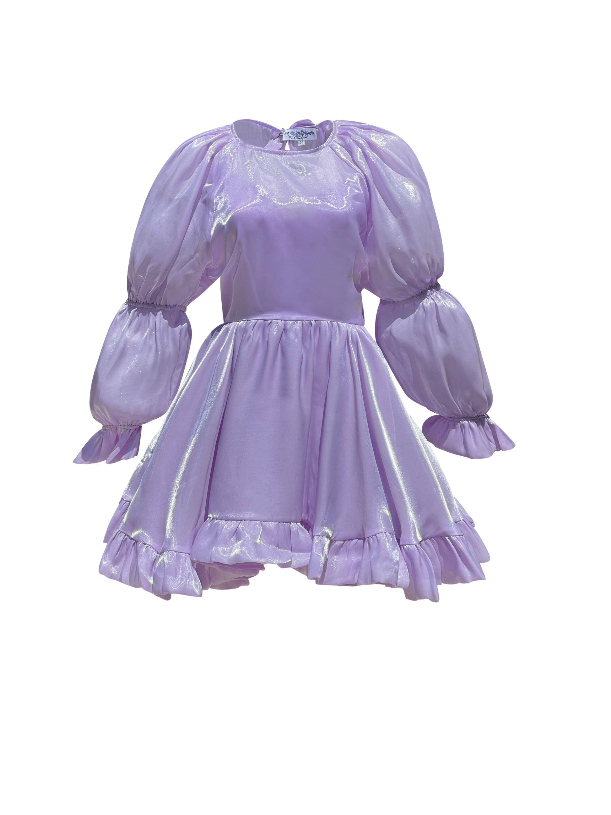 Welcome to the realm of ethereal elegance with Le Sireneuse, a divine mini-dress for the most romantic of elopements. Crafted from a glass organza with a double layer skirt, this lavish silhouette features a round collar and billowy puff sleeves ending in a sweet ruffle. The detachable bodice is made from a silk sweetheart v with straps for a gorgeous layered look. With its gathered waistline and oversized mini skirt, this timeless piece is perfect for an unforgettable day.