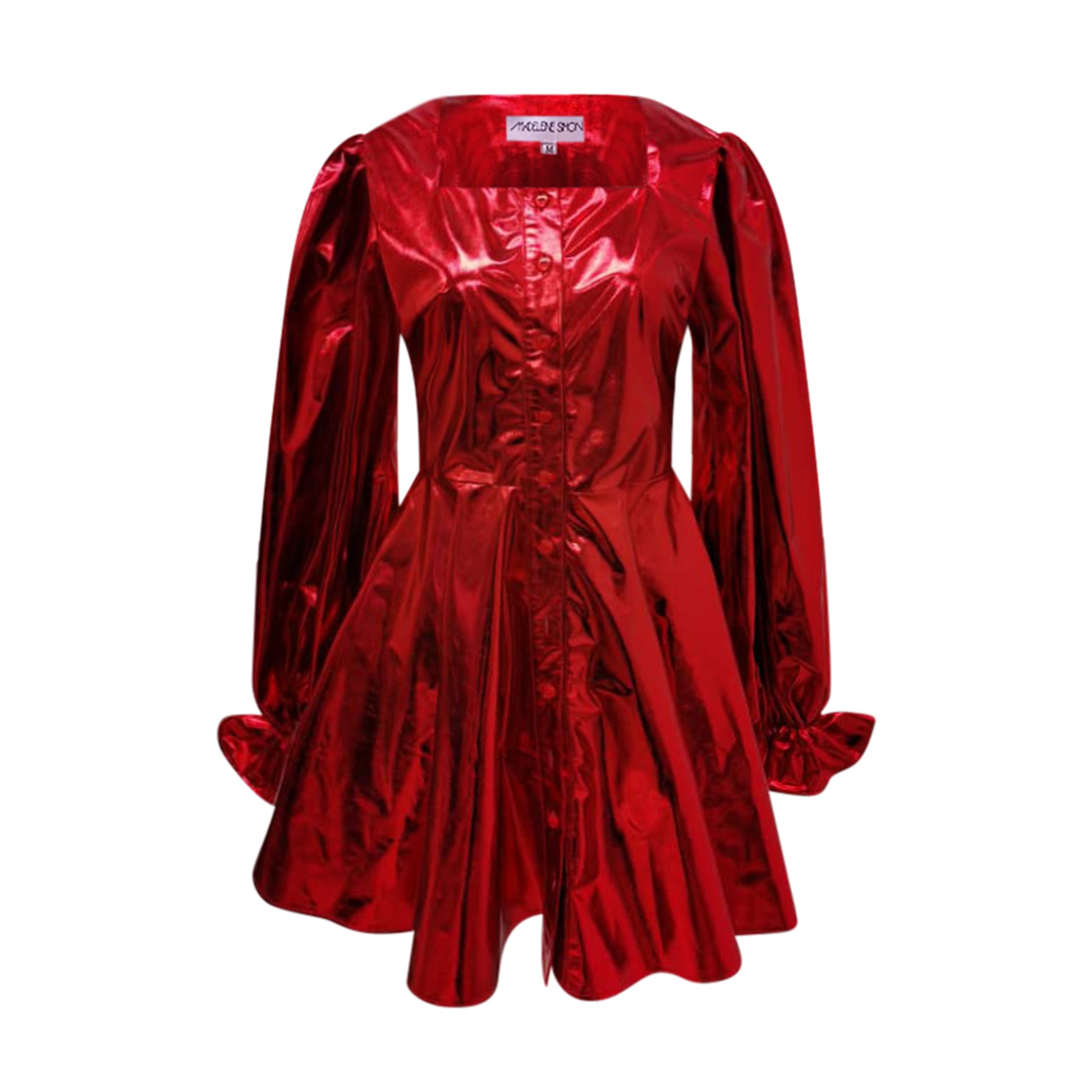 Lined, full front heart buttons and side pockets for holiday snacks.