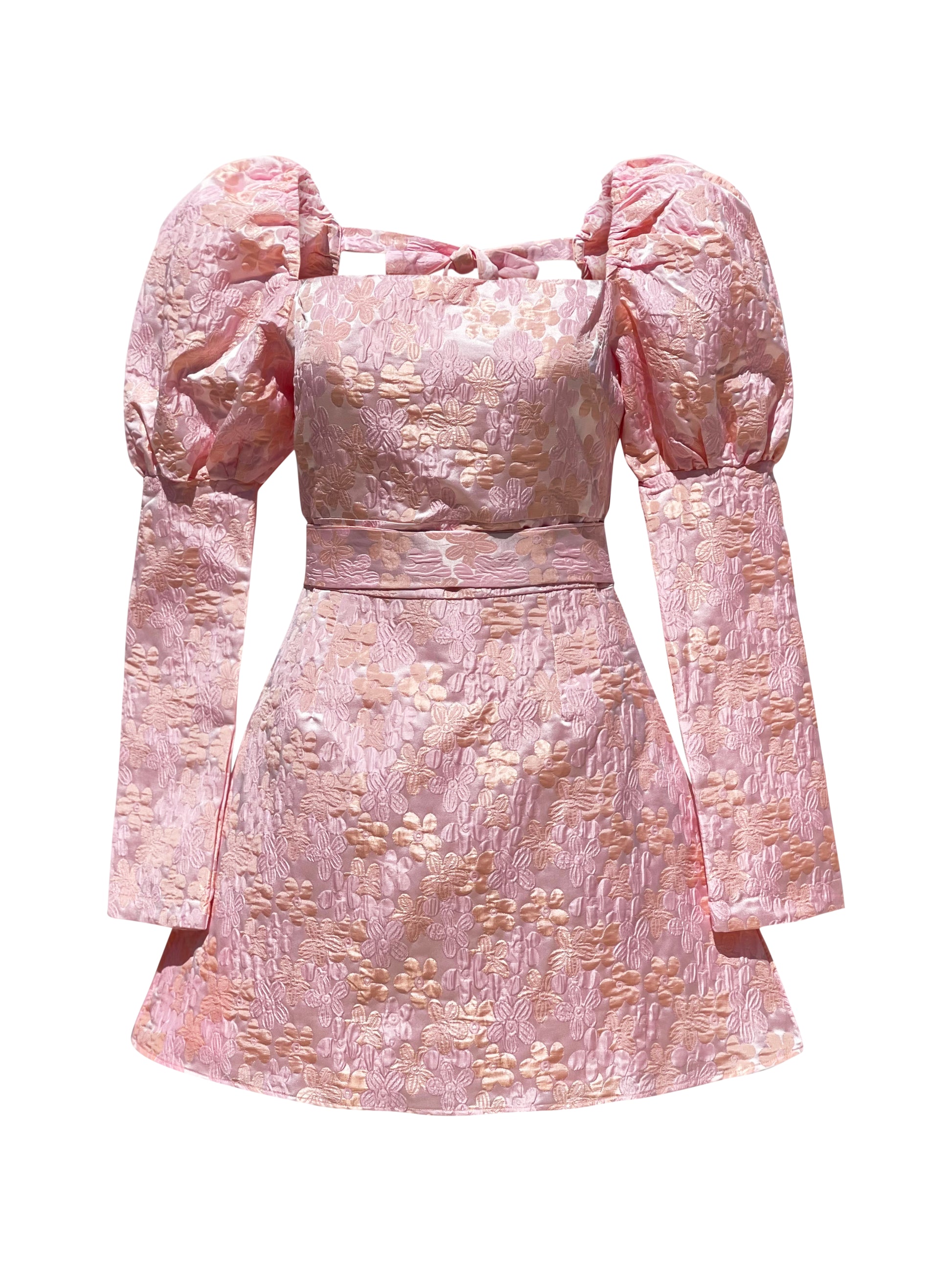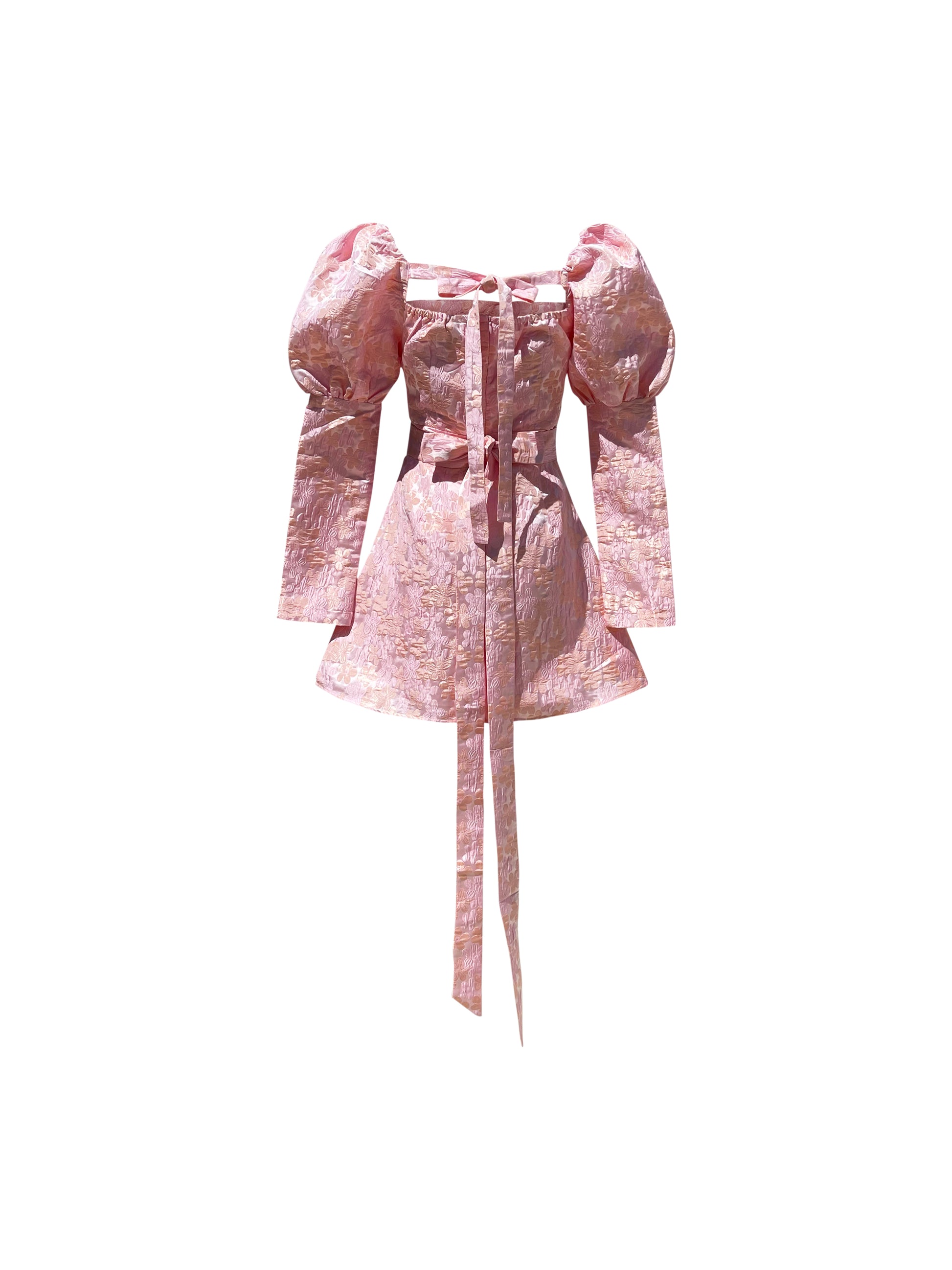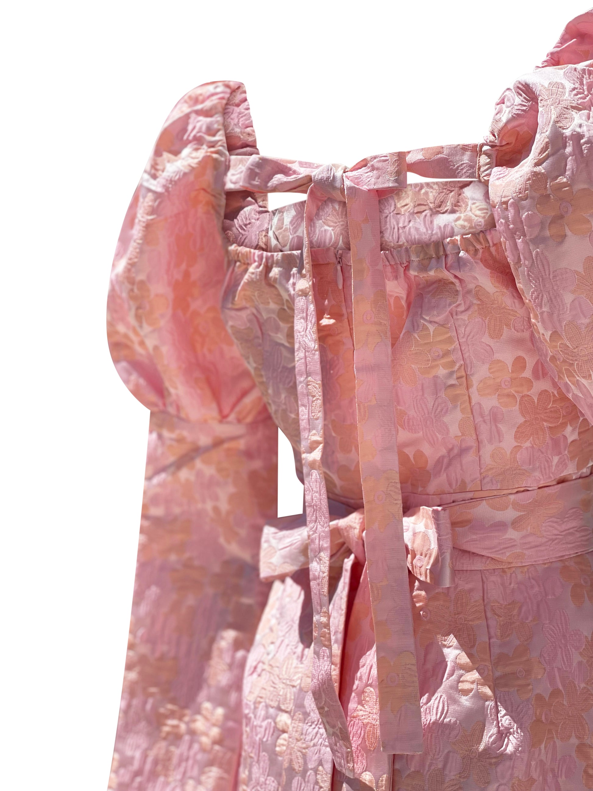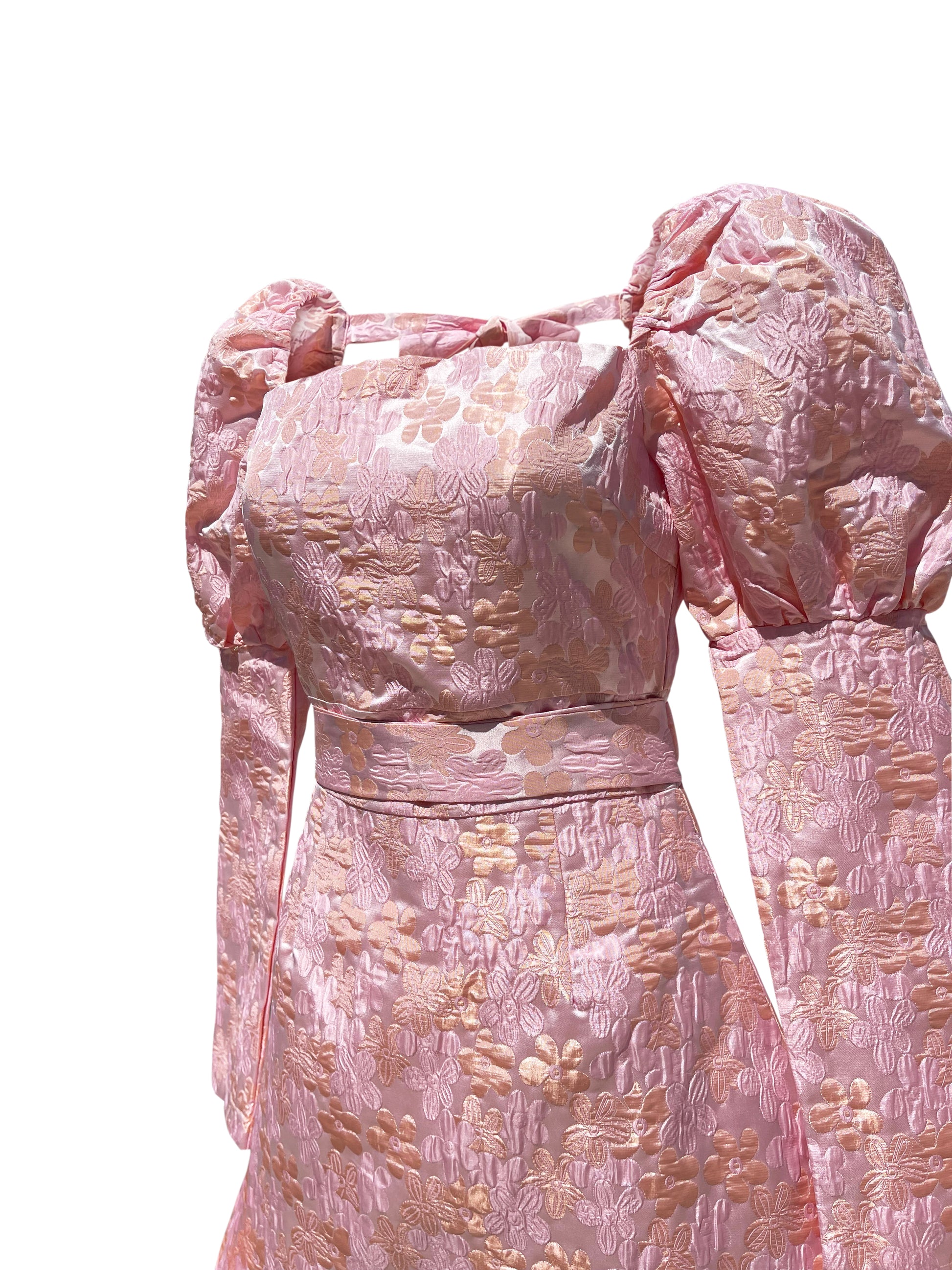 has pockets. a detachable belt. a big ass bow. and it's lined in silk. fabric sparkle glows in the sun.